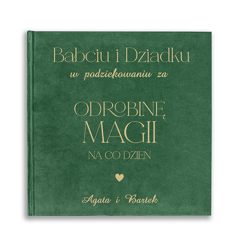 Personalizowany album welurowy to wyjątkowy sposób, aby podziękować Babci i Dziadkowi za ich miłość, obecność i codzienną magię, którą tworzą dla całej rodziny. Elegancka oprawa i indywidualny napis sprawiają, że album staje się piękną pamiątką rodzinną. Idealnie sprawdzi się zarówno jako pamiątka z Dnia Babci i Dziadka, jak i upominek wręczony przy innych rodzinnych okazjach.