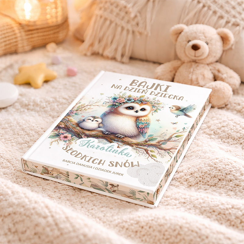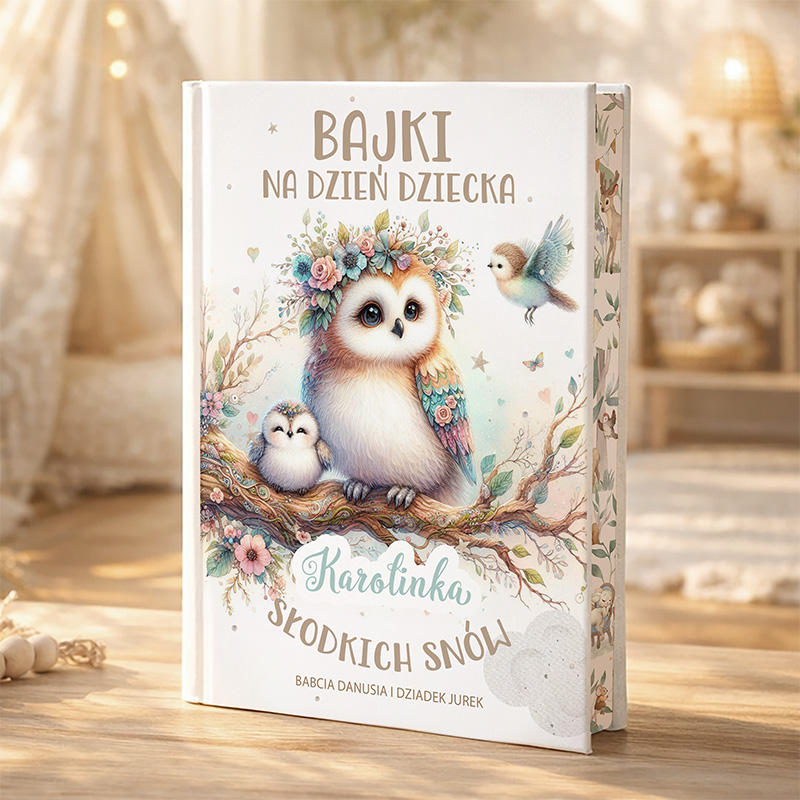 Personalizowana okładka z grafiką sowy w pastelowych kolorach czyni tę książkę wyjątkową. Na okładce pojawia się na niej imię dziecka oraz podpis osoby wręczającej prezent, dzięki czemu książka zyskuje osobisty i niepowtarzalny charakter. Oryginalny prezent na Dzień Dziecka nie musi być skomplikowany – wystarczy, że będzie pełen serca. Wnętrze książki zachwyca pięknymi, kolorowymi ilustracjami, które przyciągają uwagę dzieci. Wspólne czytanie sprzyja rozmowie i budowaniu więzi. Dlatego bajki do czytania dla dziecka na Dzień Dziecka są idealnym wyborem dla rodziców, dziadków czy chrzestnych, którzy chcą stworzyć wyjątkową chwilę bliskości. Książka sprawdza się wieczorem przed snem, ale również w ciągu dnia – pomaga wyciszyć się i przenieść do świata wyobraźni. To właśnie dlatego tak często staje się ulubioną pozycją na dziecięcej półce.