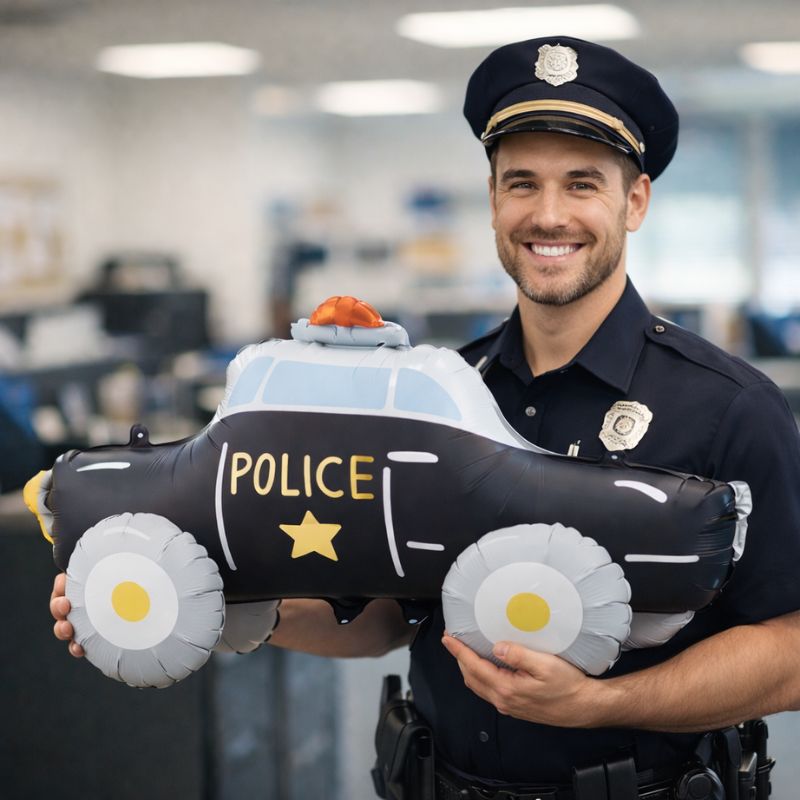 Balon w kształcie policyjnego radiowozu będzie świetnym pomysłem na prezent dla policjanta, przyszłego policjanta lub osoby interesującej się służbami mundurowymi. Doskonale sprawdzi się również jako dekoracja na urodziny, imprezy tematyczne, przyjęcia dla dzieci czy wydarzenia związane z pracą w policji.