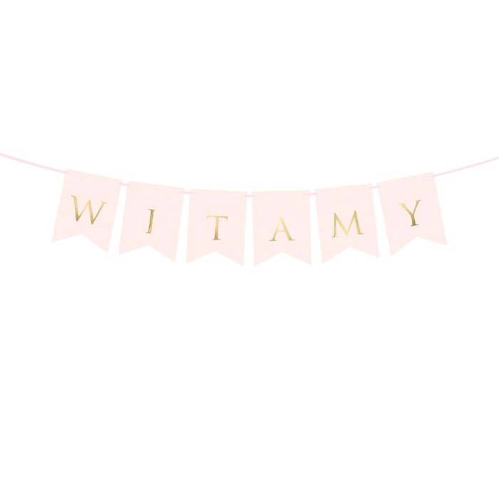 Baner dekoracyjny z napisem „Witamy” to idealne rozwiązanie na każdą uroczystość – od chrztu i komunii po baby shower czy domowe spotkanie z bliskimi. Girlanda została zaprojektowana z myślą o wyjątkowych okazjach, w których liczy się nie tylko estetyka, ale także dbałość o detale. Każda z liter tworzących słowo „Witamy” znajduje się na osobnym, delikatnie wyciętym proporczyku. Elementy wykonano w pastelowym odcieniu – do wyboru w wersji pudrowo-różowej lub białym. Złoty nadruk liter pięknie połyskuje w świetle, co sprawia, że girlanda prezentuje się wyjątkowo elegancko i estetycznie, przyciągając wzrok gości.