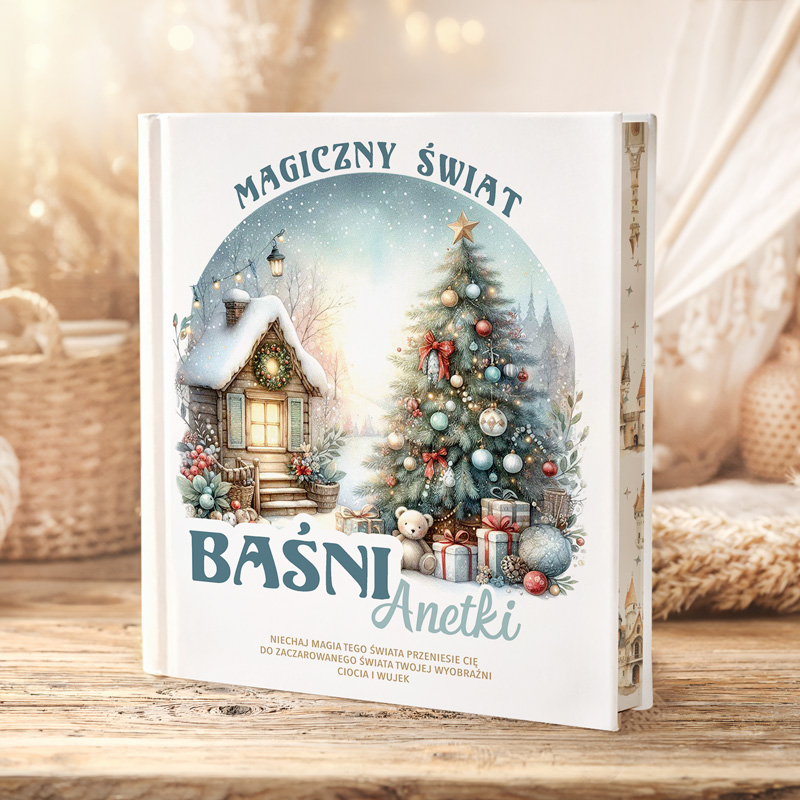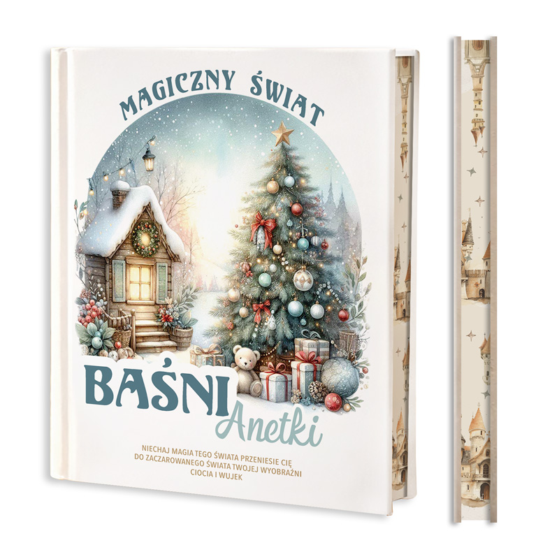 Personalizowana książka z baśniami to wyjątkowy prezent, który łączy magię klasycznych opowieści z magiczną atmosferą Świąt. Okładka tej książki wyróżnia się nie tylko imieniem dziecka, które sprawia, że staje się ona naprawdę osobista, ale także ciepłym, zimowym motywem. Na okładce znajduje się uroczy drewniany domek, ozdobiony choinką – symbol Świąt, który od razu wprowadza w świąteczny nastrój. Dzięki takiej personalizacji, każda opowieść nabiera niepowtarzalnego charakteru, a dziecko poczuje, jakby baśnie opowiadały właśnie o nim. Książka zawiera najpiękniejsze baśnie, które od pokoleń zachwycają dzieci i dorosłych. Wśród nich znajdziesz “Brzydkie kaczątko”, “Calineczkę” oraz “Nowe szaty cesarza”, które nie tylko bawią, ale także uczą wartości takich jak przyjaźń, odwaga i szlachetność. Te ponadczasowe historie są doskonałą okazją do rozmów z dzieckiem o ważnych kwestiach życiowych, szczególnie w okresie świątecznym, gdy wartości rodzinne i dobroć są szczególnie obecne w naszych sercach.