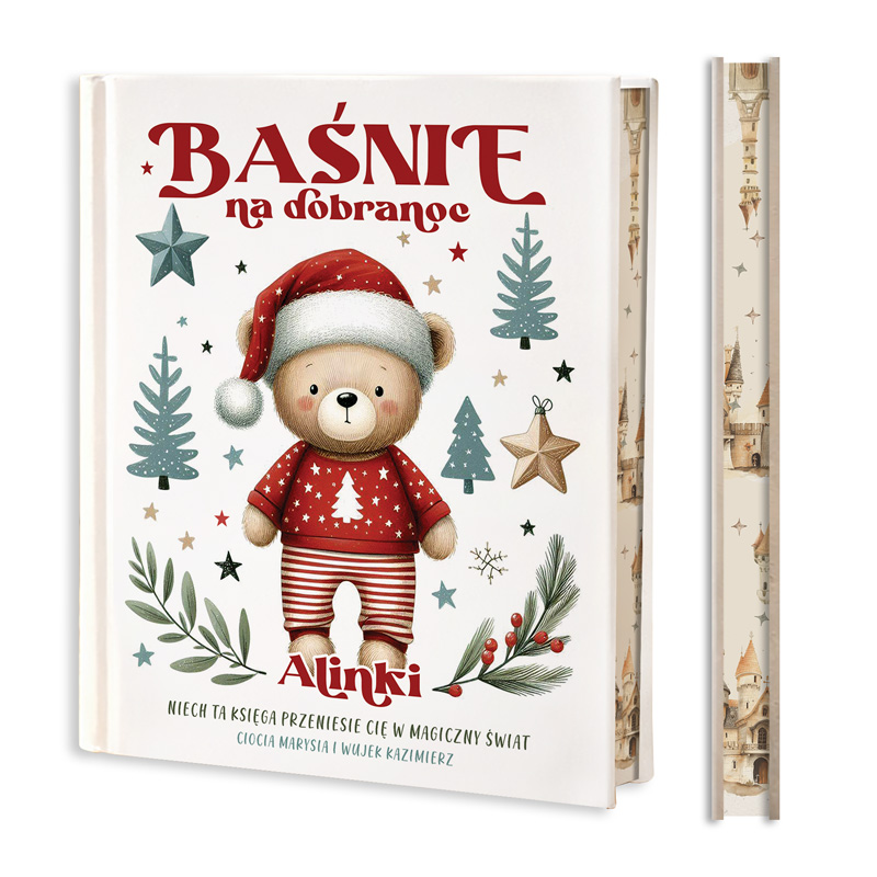 Co wyróżnia ten produkt? To personalizacja! Książka ma specjalne miejsce na dole okładki, gdzie można wpisać imię dziecka oraz osobisty podpis. To sprawia, że Baśnie Świąteczny Miś stają się wyjątkowym i unikalnym upominkiem. Idealnie nadaje się na prezent świąteczny. Personalizacja dodaje książce osobistego charakteru. Dzięki czemu staje się ona nie tylko prezentem, ale również pamiątką, którą dziecko będzie mogło zachować na długie lata.