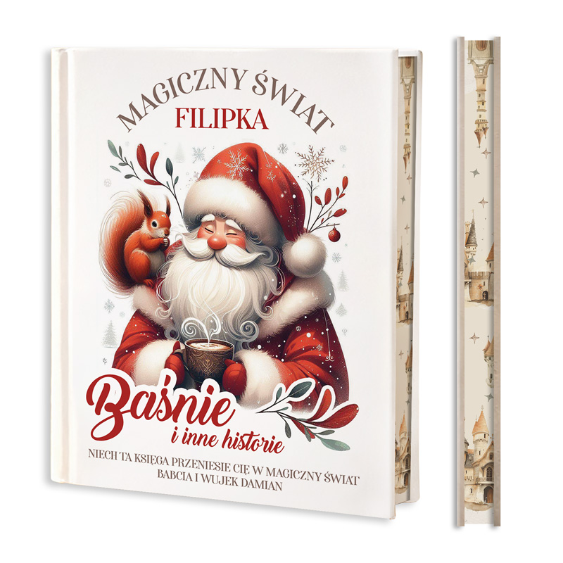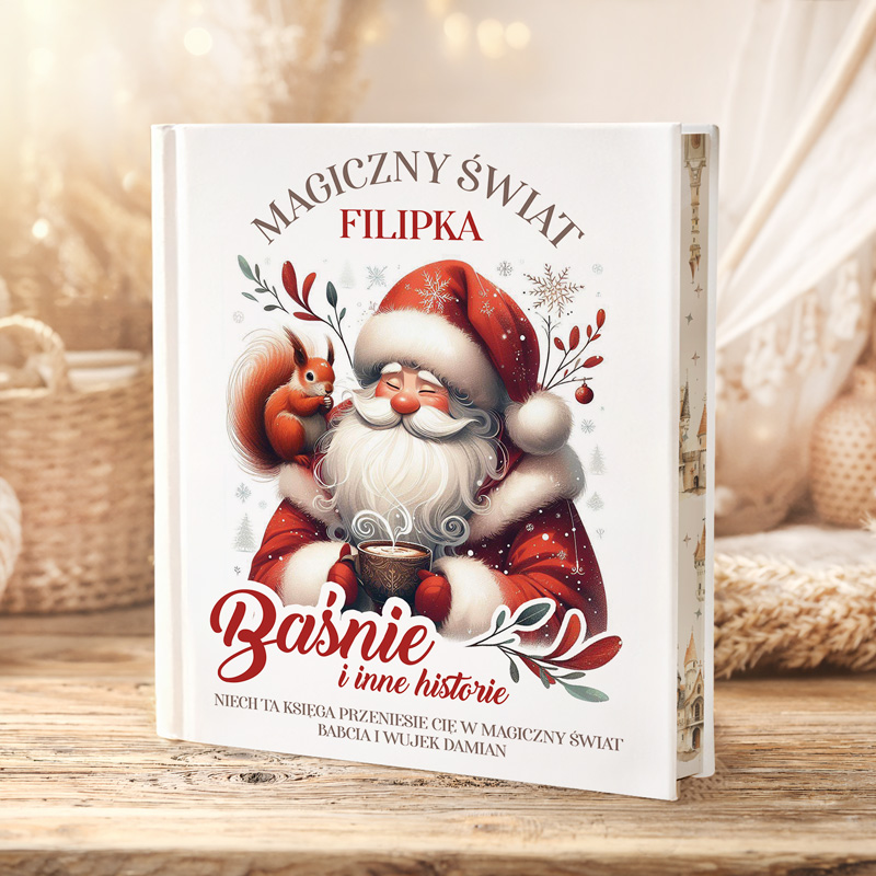 Personalizowana książka z baśniami to idealny świąteczny prezent, który łączy klasyczne opowieści z magicznym bożonarodzeniowym akcentem. Na okładce znajduje się uśmiechnięty Święty Mikołaj z wiewiórką na ramionach, a imię dziecka sprawia, że książka staje się wyjątkową pamiątką. W książce zebrano najpiękniejsze baśnie, które od lat zachwycają dzieci i dorosłych, ucząc ważnych wartości. To doskonały sposób na kultywowanie tradycji czytania w rodzinie i tworzenie niezapomnianych wspomnień z zimowych wieczorów.