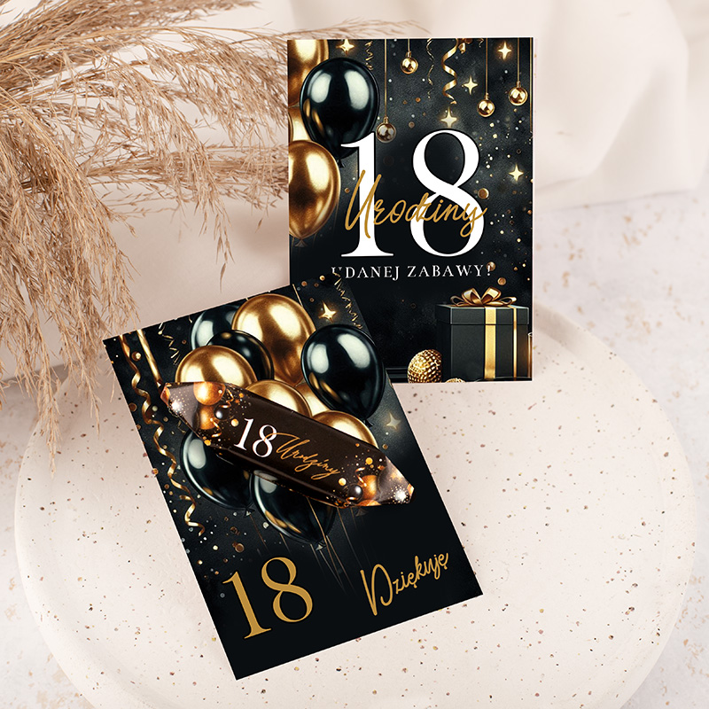 Świętowanie osiemnastych urodzin to wyjątkowy moment w życiu każdego młodego człowieka. Dlatego warto zadbać o najmniejsze detale, które sprawią, że ten dzień pozostanie w pamięci nie tylko solenizanta, ale także wszystkich zaproszonych gości. Uniwersalne podziękowanie dla gości na 18 urodzinach w postaci eleganckich bilecików dołączanych do słodkości to idealny sposób na okazanie wdzięczności za wspólne świętowanie. Zestaw zawiera 10 sztuk karteczek, które zachwycają nowoczesnym designem w kolorystyce czerni, złota i bieli. Taka kompozycja kolorystyczna prezentuje się luksusowo i doskonale pasuje do stylu glamour oraz imprez z nutą elegancji.