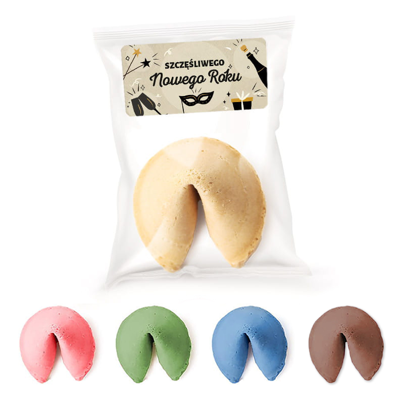 Okres świąt Bożego Narodzenia, koniec starego roku i przychodzący po nim karnawał, to znakomite okazje do spotkań towarzyskich w gronie rodziny i znajomych. Bez względu na to, czy chcesz obdarować przyjaciela, koleżankę lub kogoś z bliskiej rodziny. Ciasteczka z wróżbą na Nowy Rok to strzał w dziesiątkę. Opakowania ciasteczek zdobią opatrzone tematyczną etykietą, a wewnątrz znajduje się zawsze pozytywna wróżba. Paski z tekstem wybierane są losowo z puli 130 wróżb. Ponieważ karteczki czasem się elektryzują, w niektórych ciasteczkach mogą znaleźć się dwie wróżby. Ten wyjątkowy pomysł na drobny upominek z pewnością stanie się dobrym omenem na kolejne 12 miesięcy i wywoła uśmiech na twarzy odbiorcy!