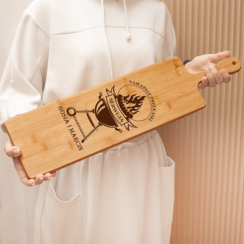 - Taki upominek doskonale się sprawdzi na prezent dla pary. Jako wyposażenie kuchni dobrą okazją na sprawienie deski z grawerem będzie zaproszenie na parapetówkę. Długa deska do krojenia i na przekąski, z imionami pary, to również przedmiot, który można wręczyć jako dodatek do prezentu ślubnego.