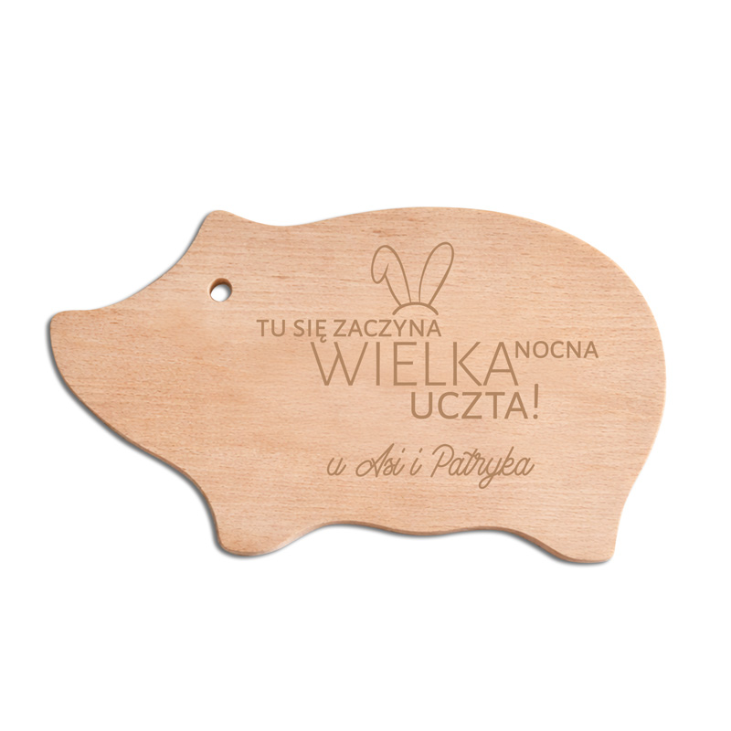 Drewniana deska kuchenna w kształcie świnki na Wielkanoc to wyjątkowy prezent na Wielkanoc. Naturalne drewno i personalizowany grawer sprawiają, że to idealna deska kuchenna, a także jako ozdoba świątecznego stołu.