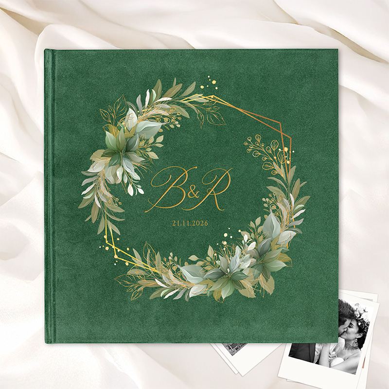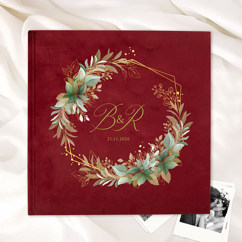 Elegancki welurowy album na zdjęcia, który pomieści piękne wspomnienia z dnia ślubu.