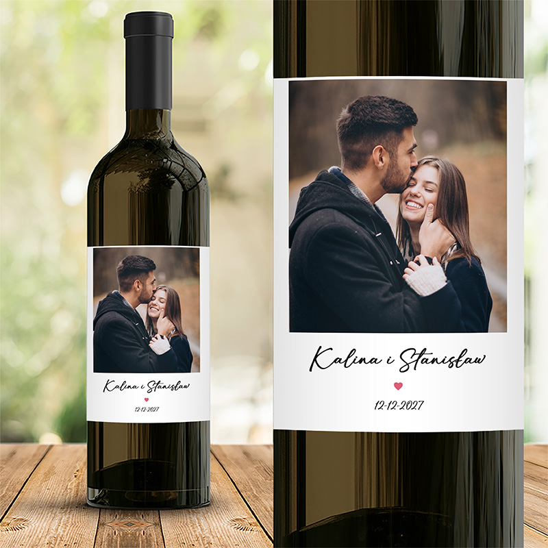 Personalizowana etykieta na wino z waszą fotografią, imionami i ważną datą zamienia zwykłą butelkę w romantyczny prezent.