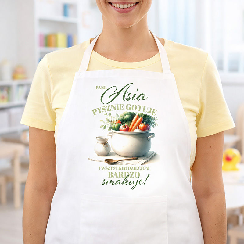 Praktyczny i jednocześnie miły upominek dla osoby, która każdego dnia przygotowuje pyszne posiłki dla dzieci. Personalizowany fartuch kuchenny to świetny pomysł na prezent dla kucharki ze szkoły lub przedszkola, który w wyjątkowy sposób podkreśli jej pracę i zaangażowanie.