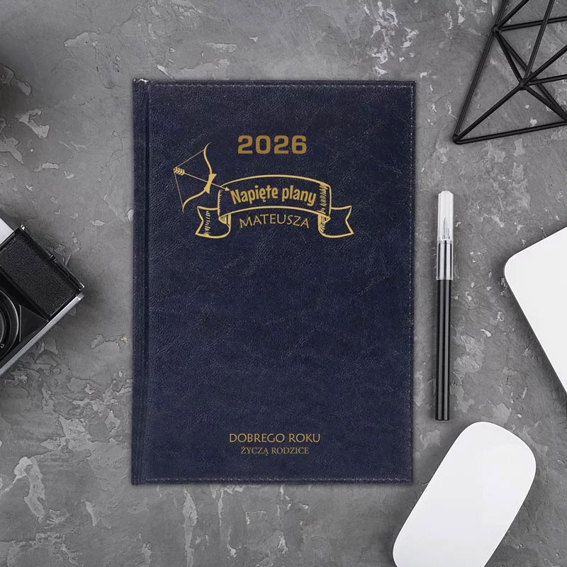 • oprawiony w ekoskórę w efektownym kolorze z napisem – 2026,