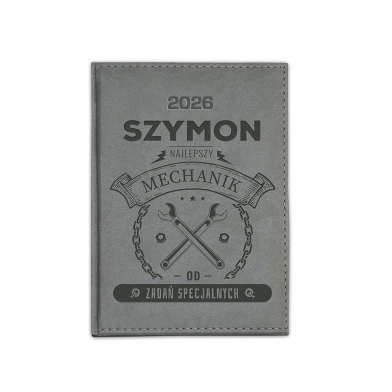 Kalendarz książkowy na rok 2026 to funkcjonalny prezent. Kalendarz posiada personalizowaną okładkę, w sześciu kolorach do wyboru. Oferujemy możliwość umieszczenia imienia mechanika. Opcja personalizacji nie tylko podnosi wartość prezentu, ale również pełni funkcję praktyczną – w przypadku zgubienia kalendarza, ułatwia jego identyfikację i powrót do właściciela. Kalendarz ma starannie zaprojektowany plan roczny na 2026 rok. Terminarz jest podzielony w przejrzysty sposób na miesiące, dni, a nawet godziny, co pozwala na precyzyjne zaplanowanie zarówno wizyt, spotkań, jak i osobistych wydarzeń. Z tyłu znajduje się dedykowana przestrzeń na alfabetyczne wpisywanie danych kontaktowych, co czyni go nie tylko kalendarzem, ale również poręcznym organizerem kontaktów. Zintegrowana tasiemka służy jako zakładka, co umożliwia szybkie odnalezienie aktualnej daty i sprawia, że korzystanie z kalendarza jest intuicyjne i wygodne.