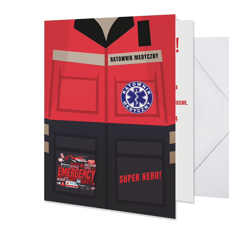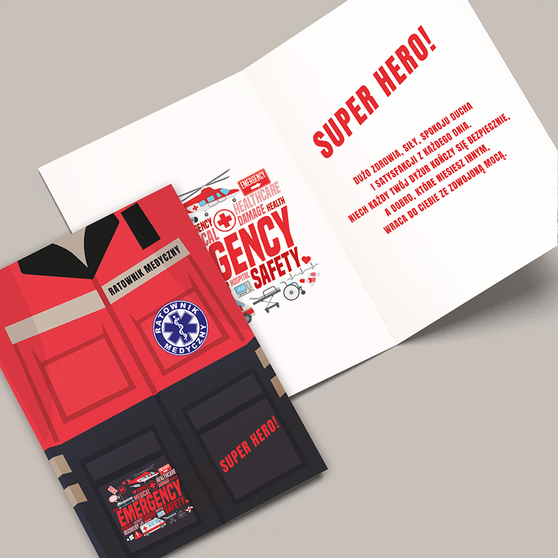 Kartka okolicznościowa dla ratownika medycznego to oryginalny sposób na wyrażenie uznania, wdzięczności lub złożenie życzeń z dowolnej okazji. Jej unikalny design przypominający uniform medyczny, z napisem „RATOWNIK MEDYCZNY” oraz hasłem „SUPER HERO!”, czyni ją wyjątkowym upominkiem dla osób pracujących w służbach medycznych. Kartka świetnie sprawdzi się na każdą okazję – urodziny, rozpoczęcie nowej pracy, rocznicę zawodową, Dzień Ratownika, awans, a nawet jako spontaniczny gest docenienia.