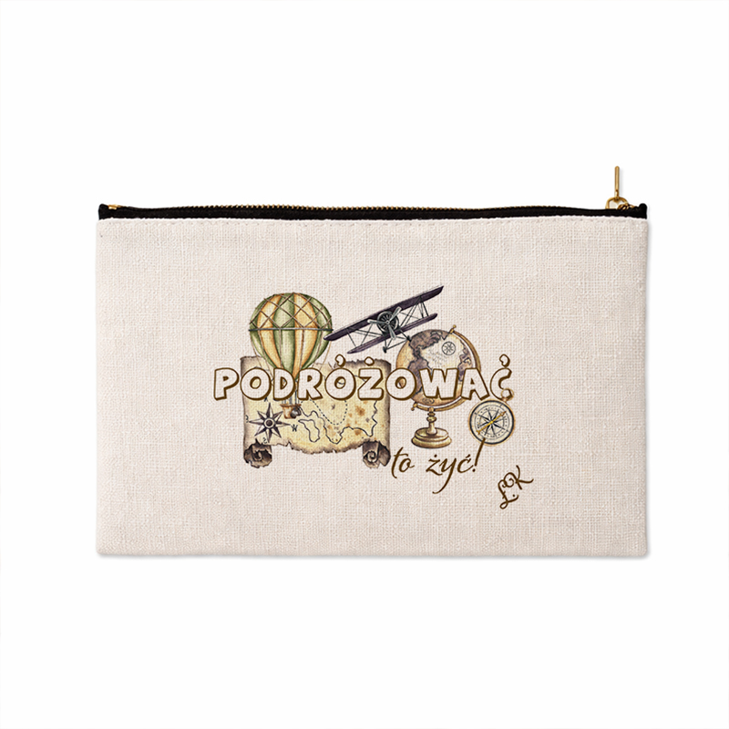 Kosmetyczka podróżnika z motywem retro to doskonały gadżet dla wszystkich miłośników odkrywania świata. Z napisem “Podróżować to żyć!” oraz grafiką przedstawiającą mapę, globus, balon i samolot, idealnie oddaje ducha przygody i wolności, które towarzyszą każdej wyprawie. Stylizowana na vintage, kosmetyczka jest nie tylko funkcjonalna, ale także modna, co czyni ją świetnym wyborem dla osób, które cenią estetykę podróżniczą.