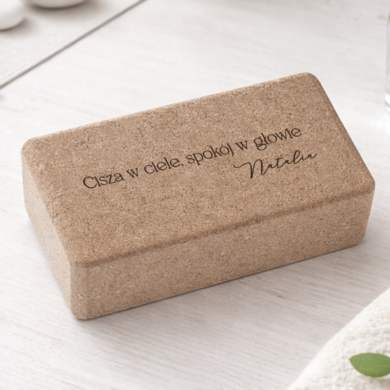 Kostka korkowa do ćwiczeń z imieniem to wyjątkowy prezent dla każdej joginki. Personalizowany grawer i naturalny materiał sprawiają, że jest nie tylko funkcjonalna, ale i stylowa.