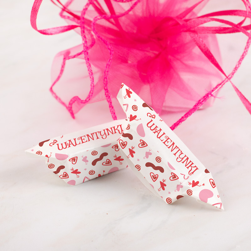 Krówki walentynkowe w woreczku to niewielki, ale wyrazisty akcent, który świetnie sprawdza się jako słodki upominek rozdawany z okazji Walentynek. Trzy klasyczne krówki zapakowane w ozdobny, półprzezroczysty woreczek tworzą gotowy drobiazg, który można wręczyć bliskim jako miły gest związany z dniem zakochanych.