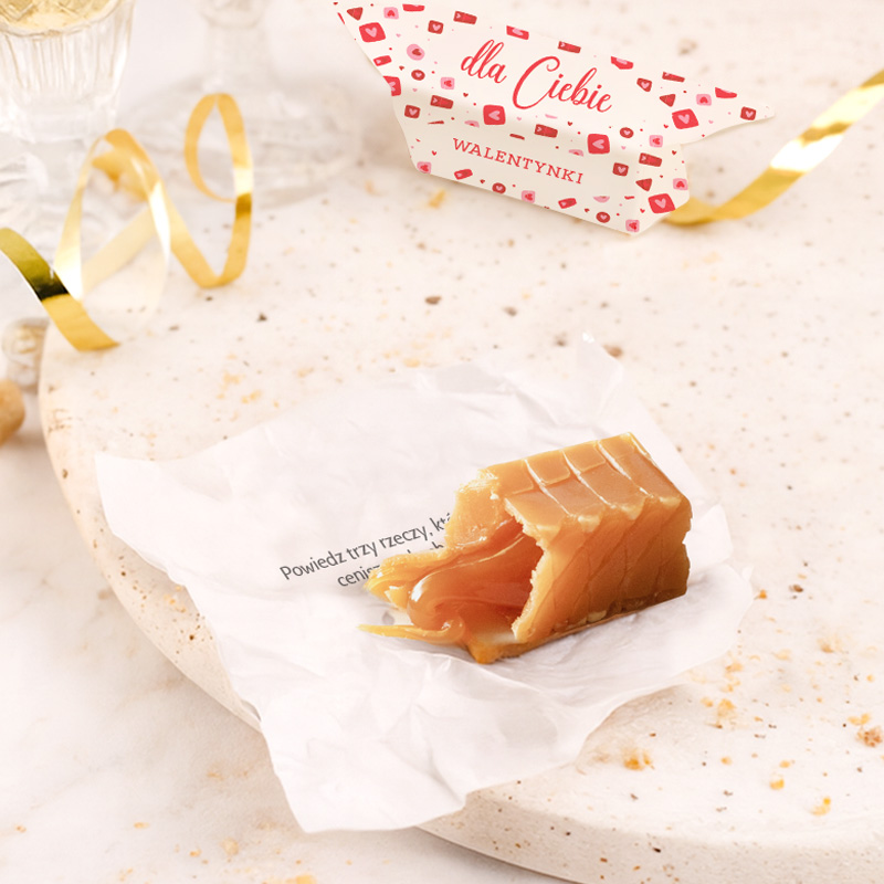 Jeśli szukasz walentynkowego dodatku, który jest jednocześnie słodki i angażujący, krówki z zadaniami dla pary będą świetnym wyborem. To nie tylko smakołyk, ale też mała atrakcja dla zakochanych – w każdym papierku ukryto krótkie zadanie, które zachęca do wspólnej zabawy i budowania romantycznego nastroju. Idealna propozycja na wieczór we dwoje.