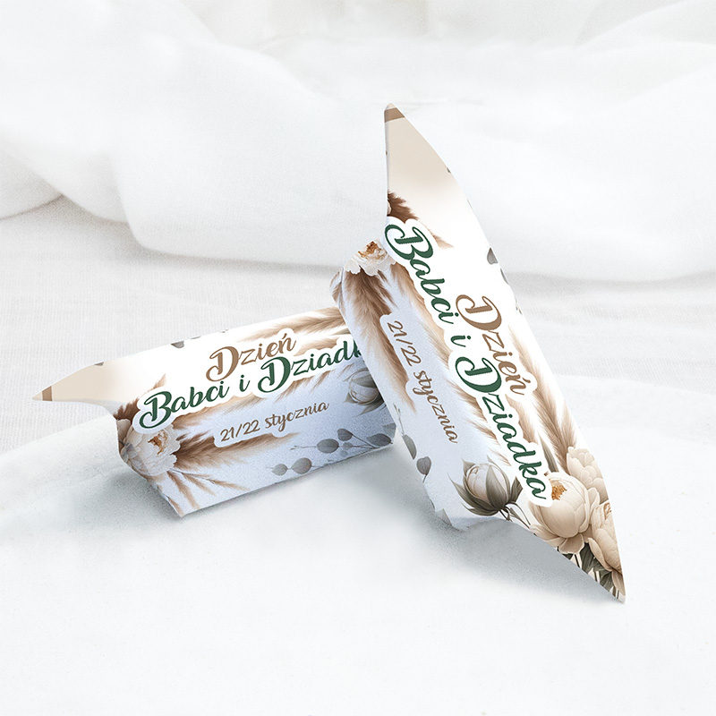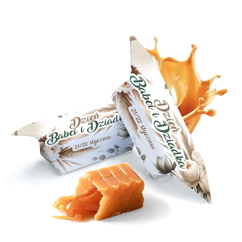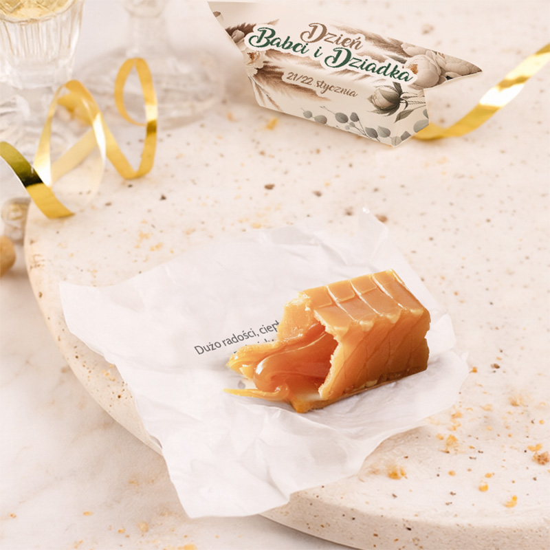 Krówki z życzeniami w zestawie 20 sztuk to słodki i elegancki sposób na podkreślenie wyjątkowego charakteru Dnia Babci i Dziadka.