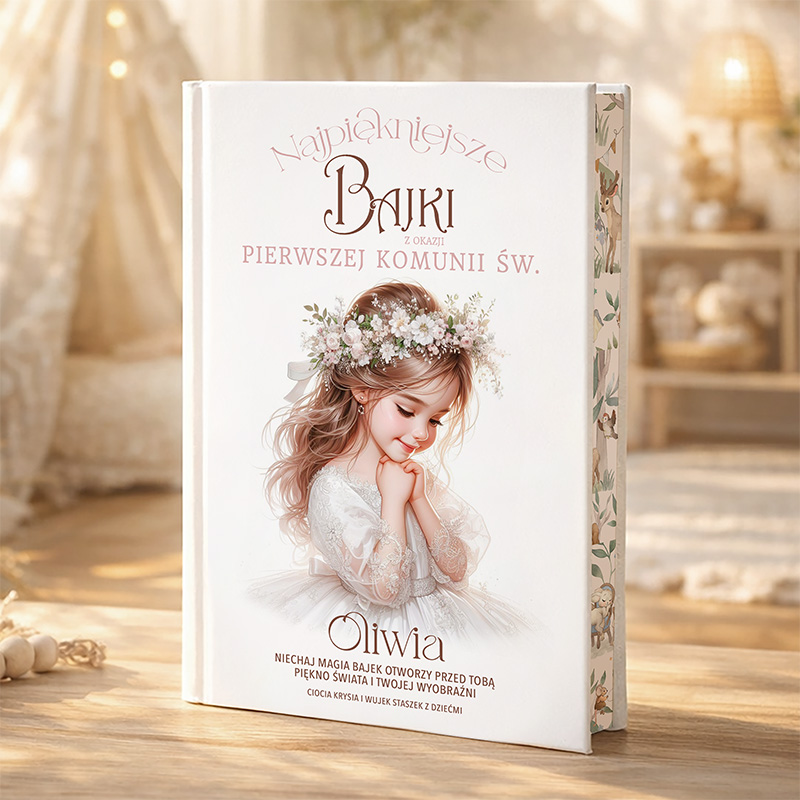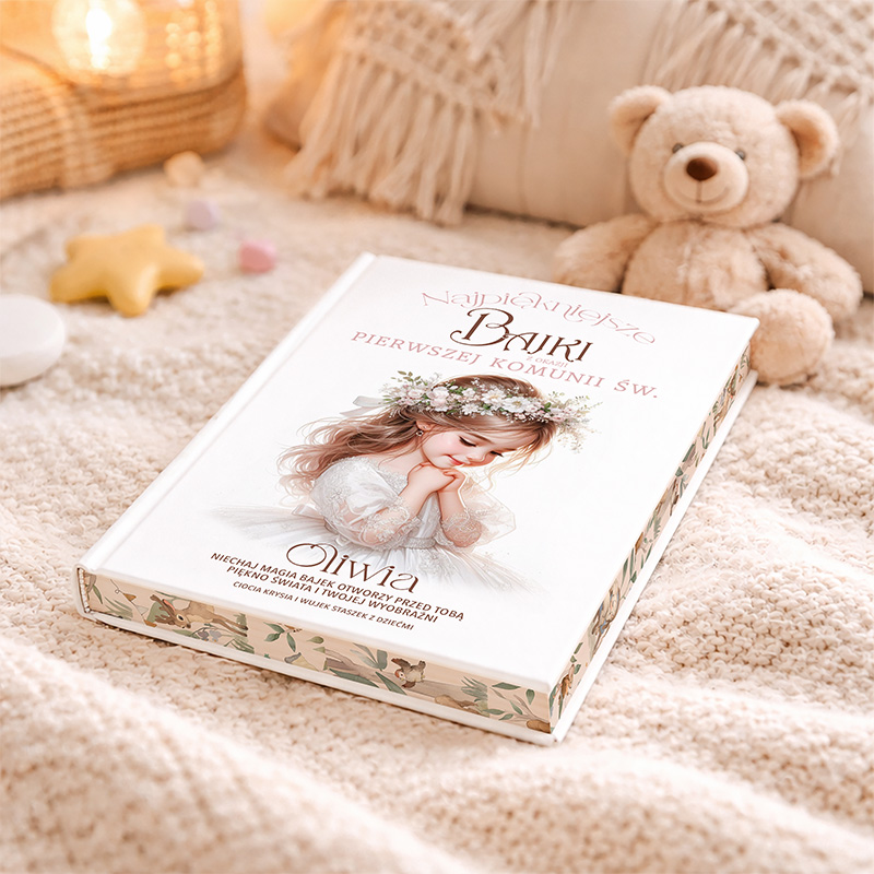 Idealny prezent na Pierwszą Komunię – personalizowana książka z bajkami dla dziewczynki. Wyjątkowa pamiątka zawiera zbiór opowieści, które wprowadzą młodą czytelniczkę w magiczny świat przygód. Dopełniona pięknymi, kolorowymi ilustracjami i możliwością dodania indywidualnej dedykacji, książka stanowi doskonały upominek, który zostanie z nią na lata.