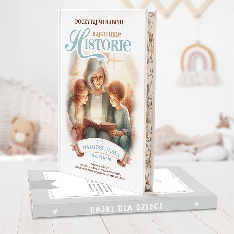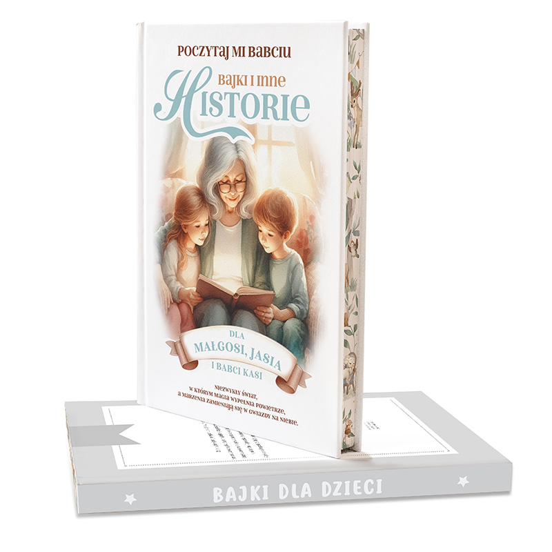 Bajki napisane przez polskie autorki wciągają od pierwszej strony, a barwne ilustracje rozwijają dziecięcą wyobraźnie. Książka posiada twardą, elegancką oprawę oraz barwione brzegi. Na okładce znajduje się ilustracja przedstawiająca babcię czytającą dwójce wnuków. Poniżej znajduje się personalizacja w postaci imion wnuków i imieniem babci.