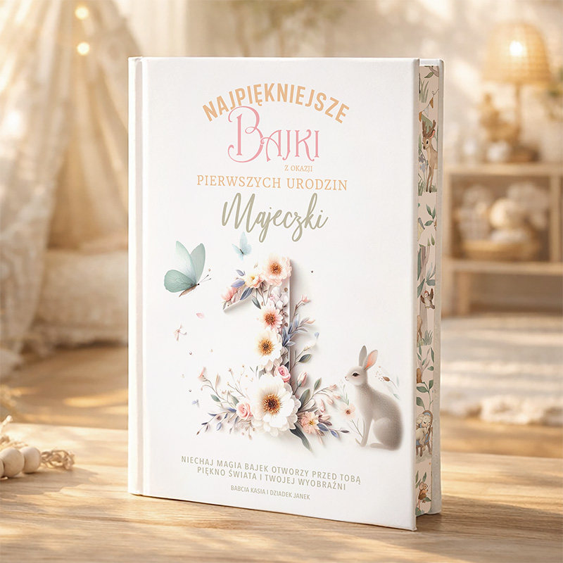 Książka z bajkami to idealny prezent na roczek od dziadków, który stanie się piękną pamiątką na lata. Personalizowana okładka z imieniem dziecka i dedykacją dodaje książce unikalności i wyjątkowego charakteru. To wspaniały sposób, by uczcić pierwsze urodziny malucha i wprowadzić go w magiczny świat bajek. Bajki można czytać podczas wieczornych rytuałów przed snem, wspólnych chwil z rodziną lub w trakcie długich podróży, rozwijając wyobraźnię i budując miłość do czytania od najmłodszych lat. Książka sprawdzi się również jako piękny symbol miłości dziadków do wnuczki czy wnuka.