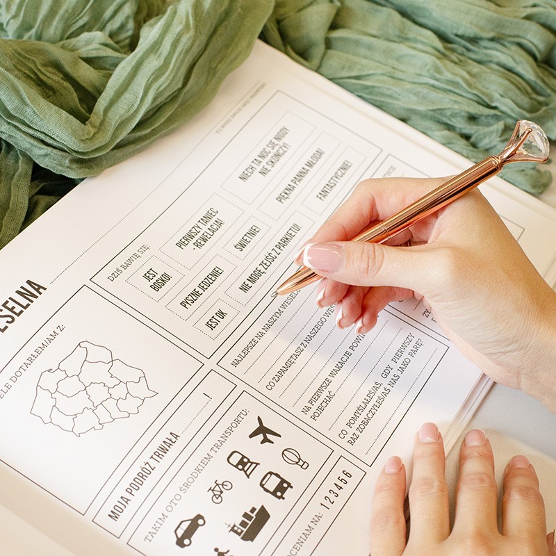 Dla pary, która planuje wesele i pragnie nadać mu osobisty ton, ta księga będzie idealnym wyborem. Zamiast kolejnego tradycyjnego dodatku, wprowadza interakcję i pozwala każdemu z gości zostawić po sobie coś więcej niż tylko podpis. Sprawdza się zarówno podczas dużych wesel, jak i kameralnych uroczystości, ponieważ pobudza kreatywność i skraca dystans między gośćmi. Nowożeńcy zyskują nie tylko zabawną, ale też wzruszającą pamiątkę, do której można wracać przez lata. Księga gości weselnych z ankietami łączy wspomnienia i estetykę w jednym produkcie, który staje się ważnym elementem ślubnej oprawy.