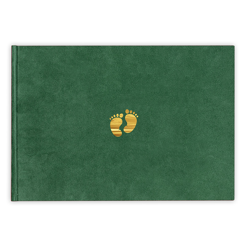 Księga Welurowa w kolorze butelkowej zieleni dla dziecka  z motywem złotych stópek to elegancki i subtelny album, który doskonale sprawdzi się jako pamiątka na całe życie. Już sam jej wygląd budzi ciepłe emocje i zaprasza do tworzenia wzruszającej historii pełnej wspomnień.
