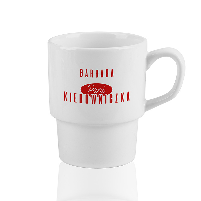 Personalizowany kubek barowy PRL z napisem ,,Pani Kierowniczka” oraz imieniem to przedmiot, który łączy funkcjonalność z charakterystycznym stylem PRL. Wzorowany na kultowych naczyniach z barów mlecznych i stołówek zakładowych, przyciąga uwagę klasycznym kształtem bez ucha oraz estetyką nawiązującą do minionych czasów. Nadruk w intensywnym czerwonym kolorze dodaje wyrazistości, a personalizacja sprawia, że każdy egzemplarz nabiera indywidualnego charakteru. Napis „Pani Kierowniczka” budzi uśmiech i nadaje całości zabawnego akcentu. Sprawdzi się jako prezent dla mamy, babci, koleżanki z zespołu albo szefowej.