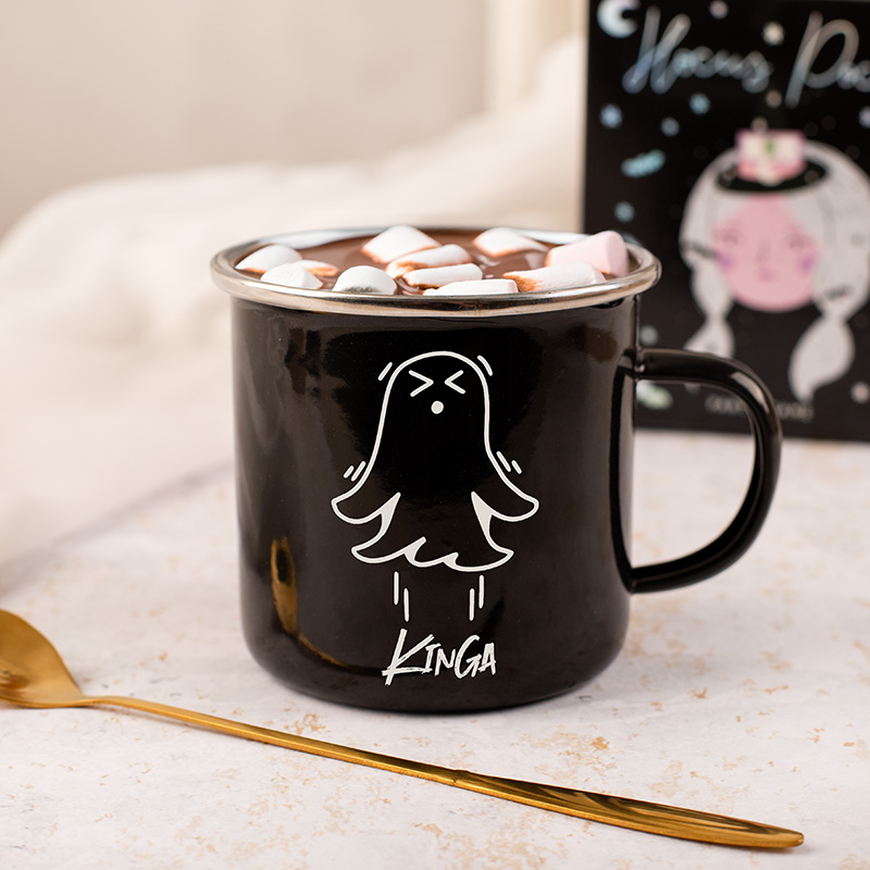 Jesień to idealny czas na ciepłe napoje, przytulne wieczory i odrobinę magii. Czarny metalowy kubek z nadrukiem ducha i imieniem to idealny prezent na Halloween dla fanów jesiennego klimatu.