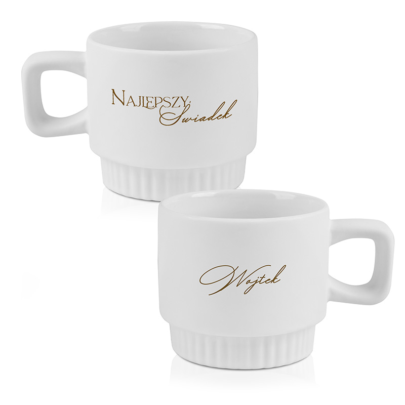Kubek ceramiczny charakteryzuje się modnym, ryflowanym wykończeniem. Dostępny jest w kolorze kremowym lub białym. Na powierzchni filiżanki znajduje się napis “Najlepszy Świadek”, wraz z imieniem. Wygodne ucho oraz odpowiednia pojemność sprawiają, że kubek idealnie sprawdzi się podczas codziennego picia kawy lub herbaty.