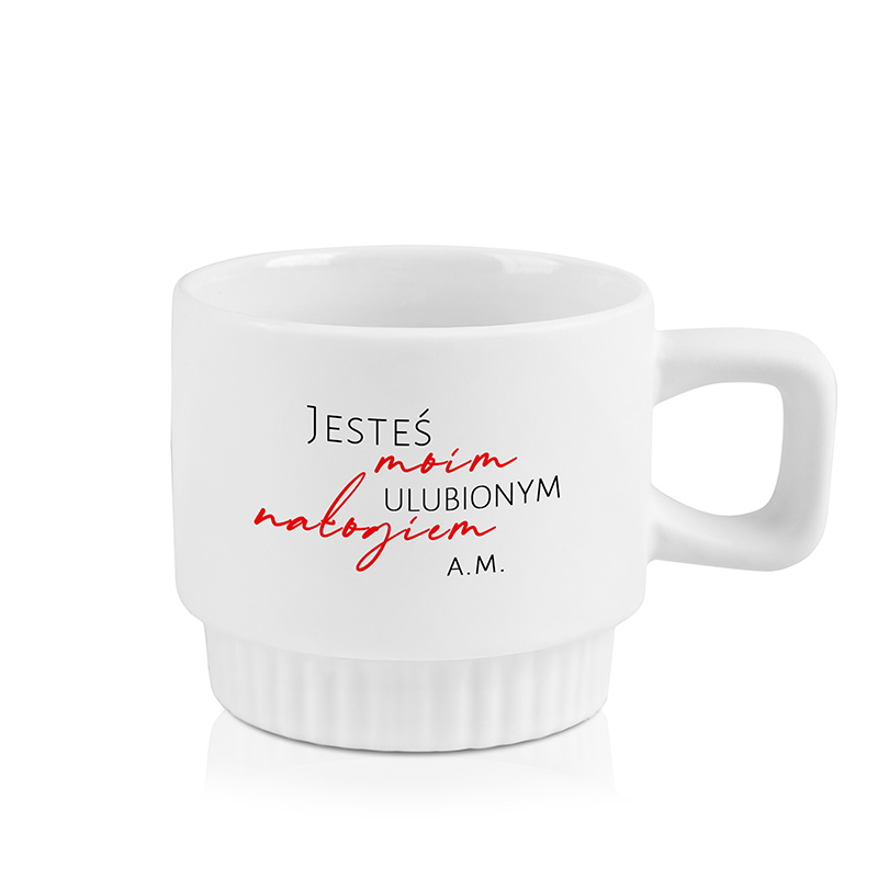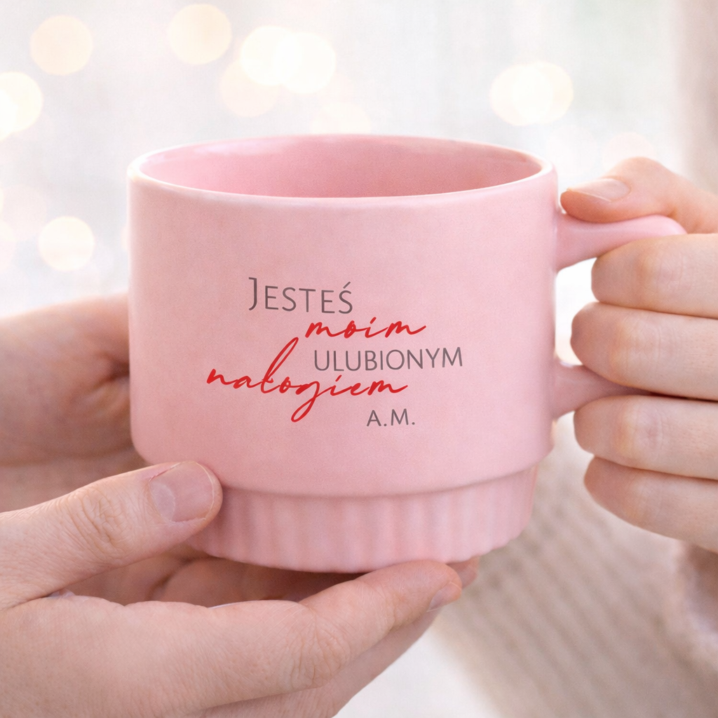 Kubek walentynkowy ryflowany z napisem “Jesteś moim ulubionym nałogiem” to pomysł na prezent miłosny. Jeśli szukasz upominku dla ukochanej, żony, narzeczonej lub dziewczyny, który będzie praktyczny, a jednocześnie mówi coś więcej niż „pamiętam”, ten kubek sprawdzi się idealnie.