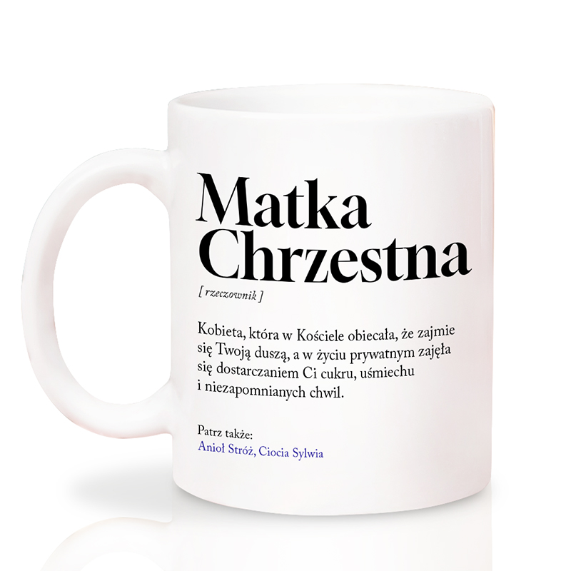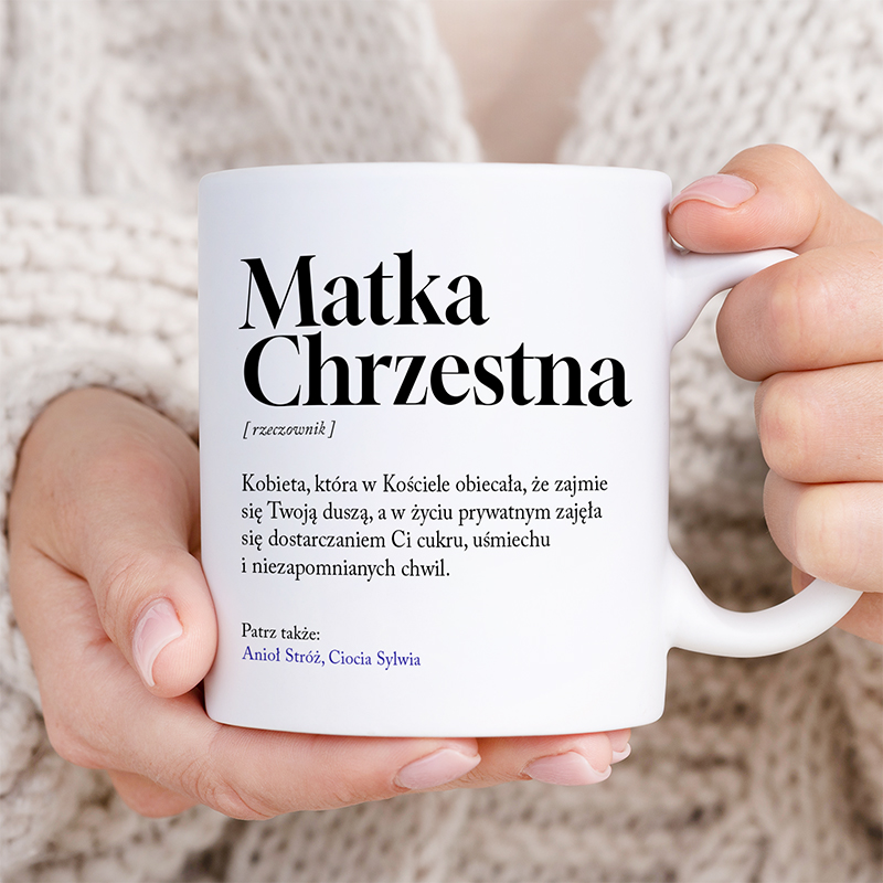 ![Biała filiżanka trzymana przez osobę, z napisem 'Matka Chrzestna [rzeczownik]' i tekstem opisującym rolę matki chrzestnej.](https://swistakpakuje.pl/wp-content/uploads/2025/10/kubek-matka-chrzestna-bialy.jpg)