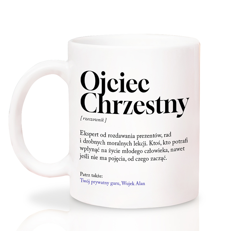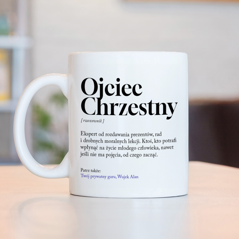 Czasem najpiękniejsze podziękowanie to nie kwiaty czy słodycze, ale drobiazg, który codziennie wywołuje uśmiech. Kubek dla Matki Chrzestnej lub Ojca Chrzestnego to wyjątkowy sposób, by pokazać im, jak wiele znaczą. Napis na kubku wzrusza i rozśmiesza jednocześnie, przypominając o więzi, której nie da się zastąpić.