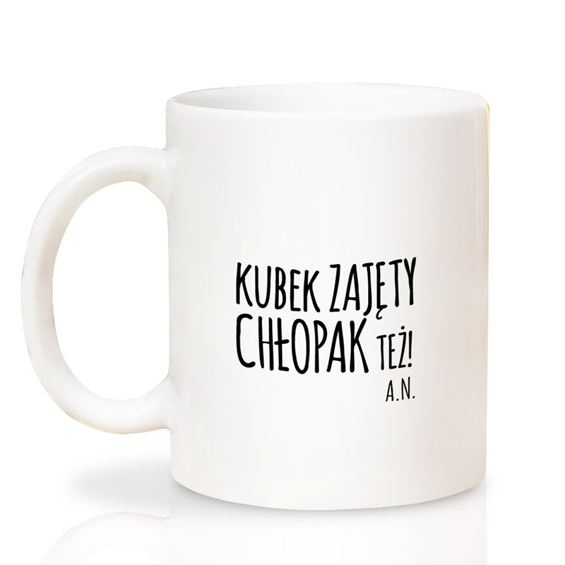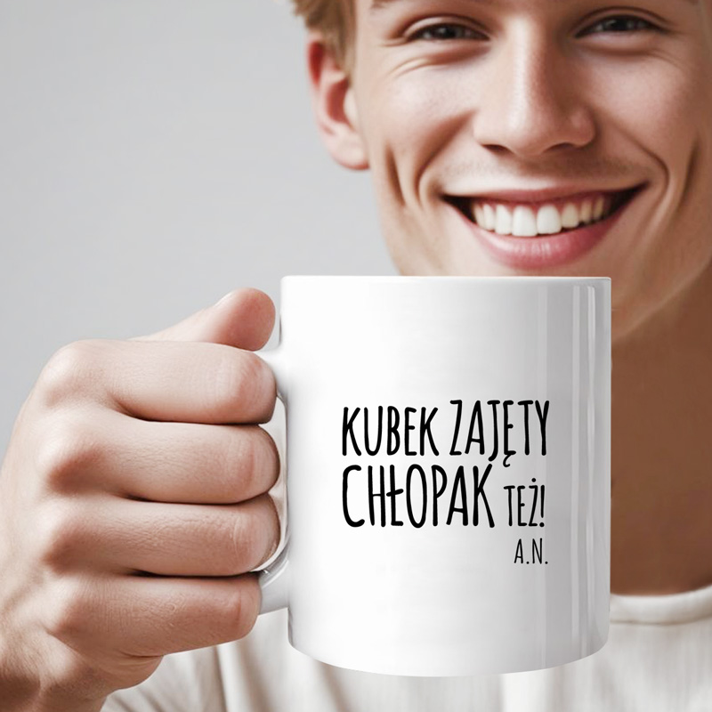 Kubek z zabawnym napisem „Kubek zajęty, chłopak też!” to praktyczny i humorystyczny gadżet, idealny do codziennej kawy czy herbaty oraz jako oryginalny prezent.