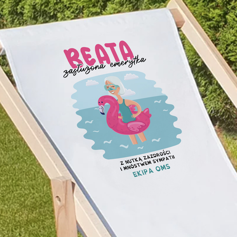 Kiedy przychodzi czas zasłużonego odpoczynku, warto celebrować go z uśmiechem! Leżak dla emerytki z imieniem to prezent, który rozbawi, wzruszy i stanie się symbolem nowego, spokojniejszego etapu życia. Kolorowy nadruk z napisem „Zasłużona emerytka z nutką zazdrości i mnóstwem sympatii” to zabawny sposób, by wyrazić uznanie i wdzięczność za wspólnie spędzone lata pracy. Dzięki personalizacji każdy leżak nabiera indywidualnego charakteru, a obdarowana osoba poczuje się naprawdę wyjątkowo.