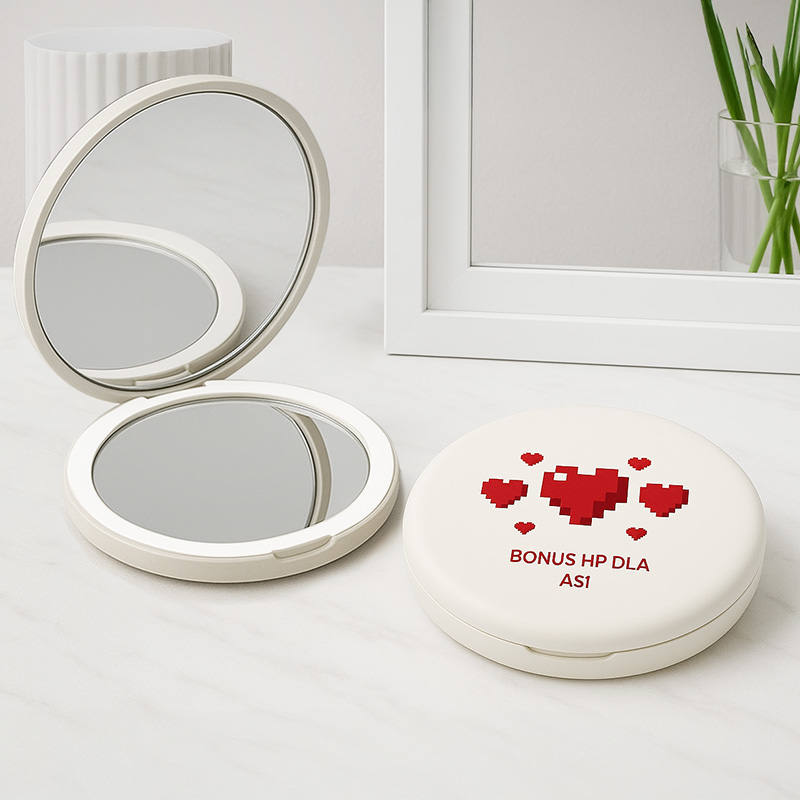 Lusterko ma kompaktowy, poręczny kształt, który z łatwością zmieści się w torebce czy plecaku. Elegancka biała obudowa została ozdobiona grafiką przedstawiającą czerwone pikselowe serca – klasyczny symbol zdrowia znany z gier retro oraz Minecrafta. Całość uzupełnia humorystyczny napis „BONUS HP DLA [imię]”, który jest personalizowany imieniem obdarowywanej osoby. Lusterko wyróżnia podświetlenie LED, które ułatwia korzystanie z lusterka. Sprawdzi się idealnie podczas poprawiania makijażu w samochodzie, pracy czy na imprezie.