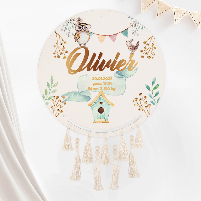 - wyjątkowa metryczka o kształcie łapacza snów po latach stanie się sentymentalną pamiątką.