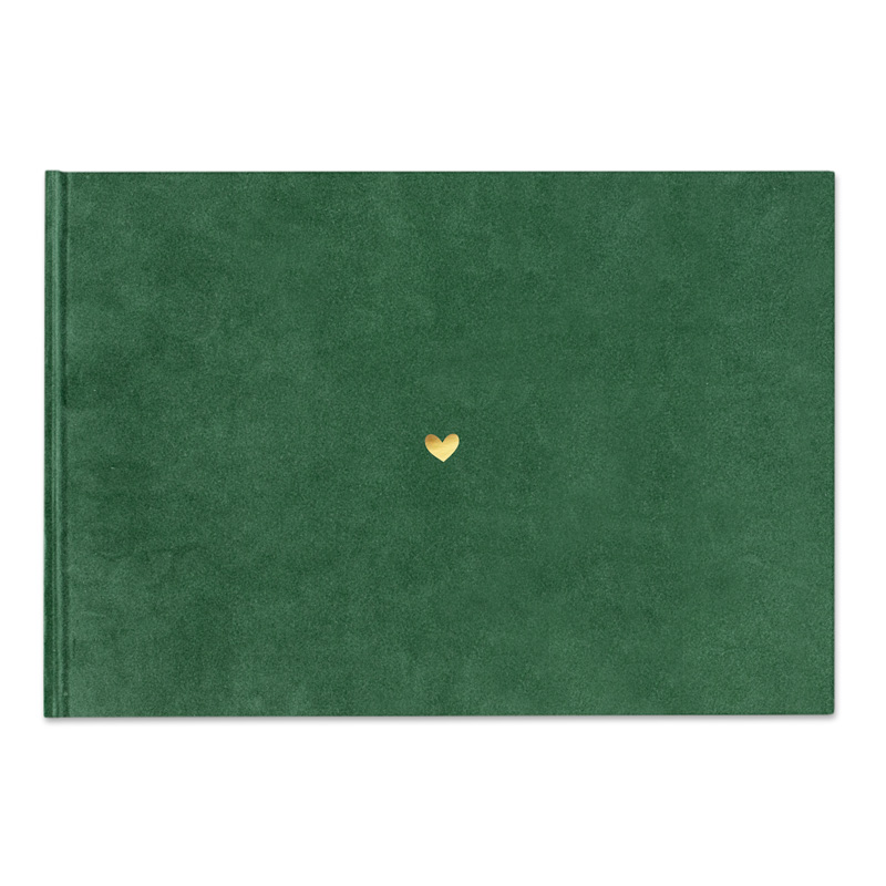 Album wykonany jest z wysokiej jakości materiału welurowego w głębokim, kolorze butelkowej zieleni.Taka barwa podkreśla jego unikalny charakter. Na środku okładki znajduje się złote serduszko, które dodaje mu uroku. Minimalistyczny design czyni go uniwersalnym, idealnym zarówno dla kobiety, jak i mężczyzny. W środku znajdują się wysokiej jakości strony, które pomieszczą najważniejsze wspomnienia. Możesz umieścić tam zdjęcia, miłosne dedykacje lub ważne cytaty. Album zmieści fotografie z romantycznych spacerów, wakacji czy codziennych momentów. Każda strona stanie się osobnym rozdziałem waszej wspólnej historii.