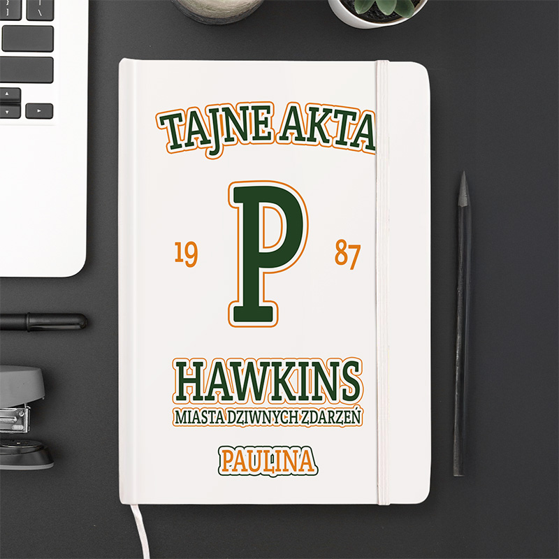 Personalizowany notatnik z inicjałem prezent dla miłośnika Stranger Things łączy w sobie funkcję praktyczną z wyrazistym, fanowskim stylem. Nawiązanie do Hawkins oraz czytelne hasło „Tajne akta” przyciągają uwagę i budują klimat znany z serialu. Duża litera inicjału oraz imię właściciela tworzą unikalną kompozycję, która świetnie prezentuje się na twardej, białej okładce. Co więcej, nadruk uzupełniają liczby „1987”, które dodatkowo podkreślają stylistykę retro. Produkt pasuje do codziennego użytkowania, ale jednocześnie wyróżnia się na tle klasycznych notesów. Ponadto wpisuje się idealnie w oczekiwania fanów kultowej produkcji. Notatnik z inicjałem prezent dla miłośnika Stranger Things sprawdza się nie tylko jako zeszyt, ale również jako osobisty element kolekcji gadżetów z ulubionego uniwersum.