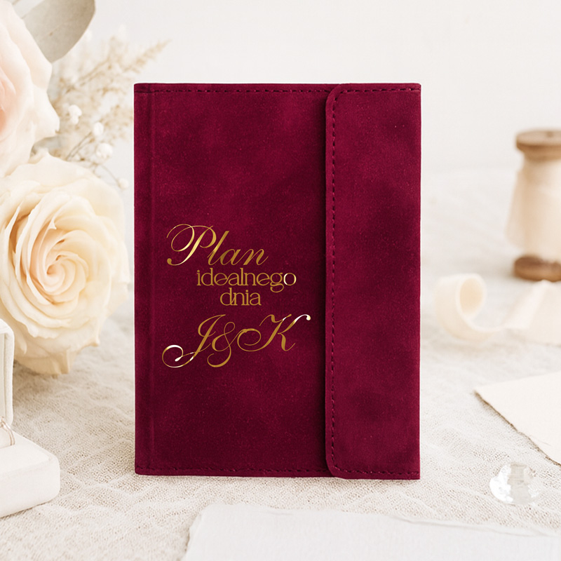 Planowanie ślubu to duże wyzwanie. Trzeba pamiętać o wielu sprawach i terminach, dlatego warto mieć wszystko w jednym miejscu. Personalizowany planer ślubny z bordową okładką pomaga zapisać każdy etap przygotowań. Można w nim zaplanować budżet, spotkania z usługodawcami i spisać inspiracje, dzięki czemu organizacja ślubu staje się prostsza i mniej stresująca. Co ważne, notes do planowania ślubu jest nie tylko praktyczny, ale i elegancki.
