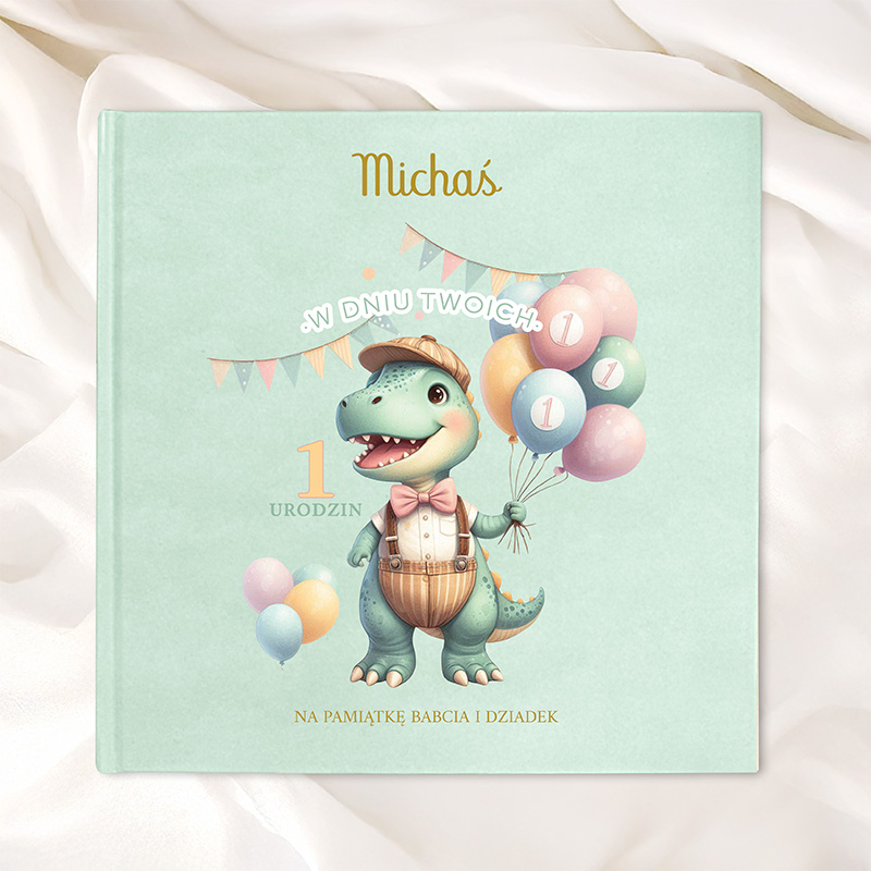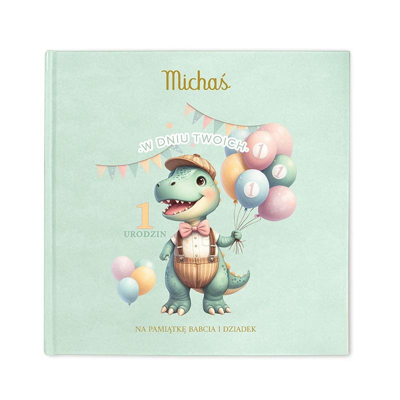Szukasz oryginalnego prezentu na roczek? Personalizowany album dla dziecka z okazji pierwszych urodzin to idealna pamiątka, która zachwyci zarówno rodziców, jak i malucha. Twarda okładka z pastelową ilustracją uroczego dinozaura i balonikami nadaje całości radosnego charakteru. Imię dziecka na okładce sprawia, że staje się osobistym i niepowtarzalnym upominkiem. Wewnątrz znajdziesz miejsce na zdjęcia, wpisy oraz wspomnienia z najważniejszych chwil w życiu malucha. Z tego powodu album to nie tylko pamiątka, ale również rodzinna kronika. Idealnie sprawdzi się jako prezent od chrzestnych, dziadków lub bliskich przyjaciół. Jest to praktyczny, ale i wzruszający upominek.