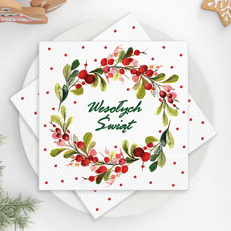 - Serwetki: złożone 16 x 16cm, rozłożone 33 x 33cm, ilość w opakowaniu: 20szt
