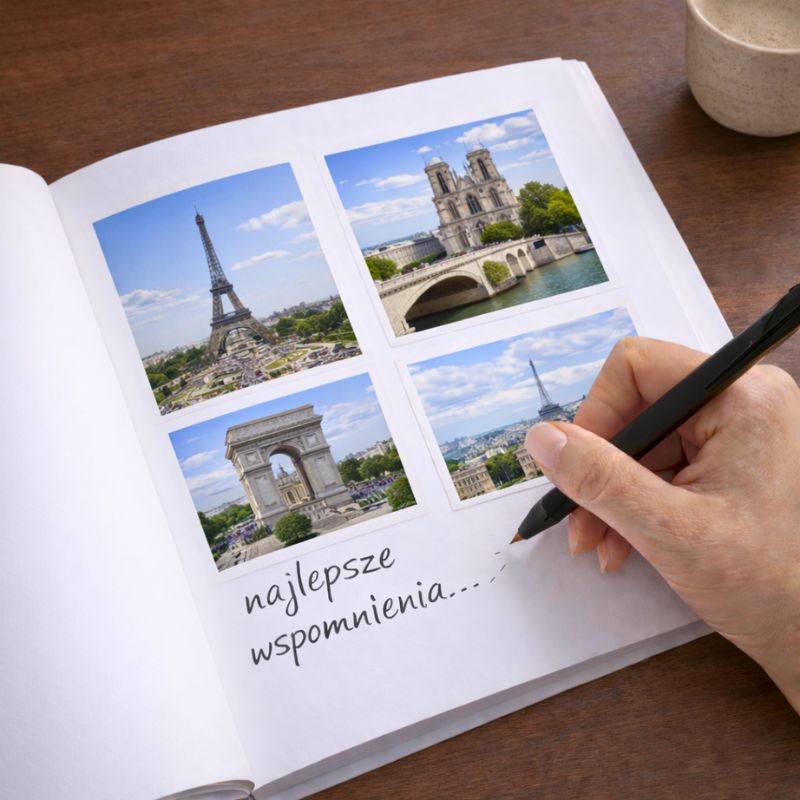 Personalizowany pamiętnik podróży po Francji to idealne miejsce do zapisywania wspomnień, planów zwiedzania, ulubionych miejsc oraz emocji towarzyszących podróży. Doskonale sprawdzi się jako dziennik podróży Francja, notatnik wakacyjny czy album na wspomnienia z wyjazdu do Paryża. To świetny pomysł na prezent dla podróżnika, pary wybierającej się do Francji, jak i dla osoby, która chce mieć wyjątkową pamiątkę z majówki lub wakacji.