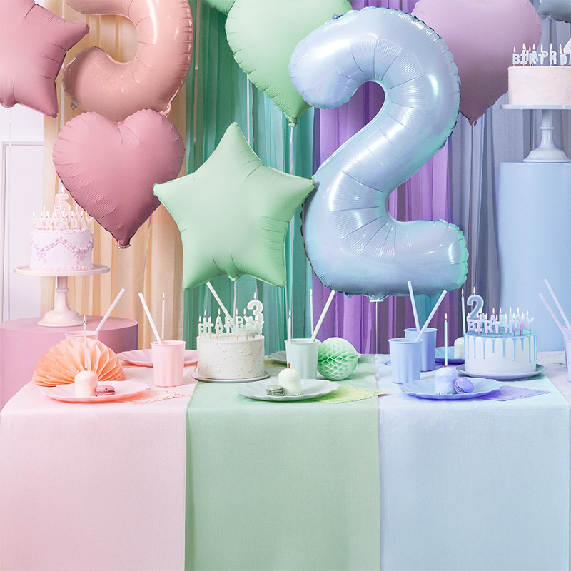 Obrus w pastelowych kolorach różowym, błękitnym lub zielonym to delikatna, a zarazem wyrazista dekoracja, która dodaje uroku każdemu przyjęciu. Dzięki subtelnej kolorystyce świetnie sprawdza się jako tło dla eleganckiej zastawy, świeżych kwiatów i balonowych kompozycji. To idealny wybór na przyjęcia w stylu romantycznym, boho, garden party, a także wydarzenia takie jak baby shower, chrzest czy urodziny.