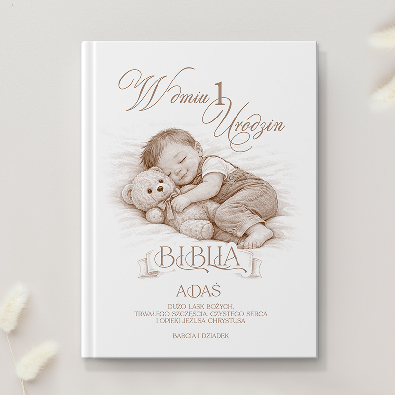 Personalizowana Biblia dla dziecka doskonale sprawdzi się jako prezent na pierwsze urodziny od rodziców chrzestnych, dziadków lub bliskich. Personalizowana Biblia na roczek dla chłopca to wyjątkowy prezent religijny z imieniem dziecka i dedykacją.