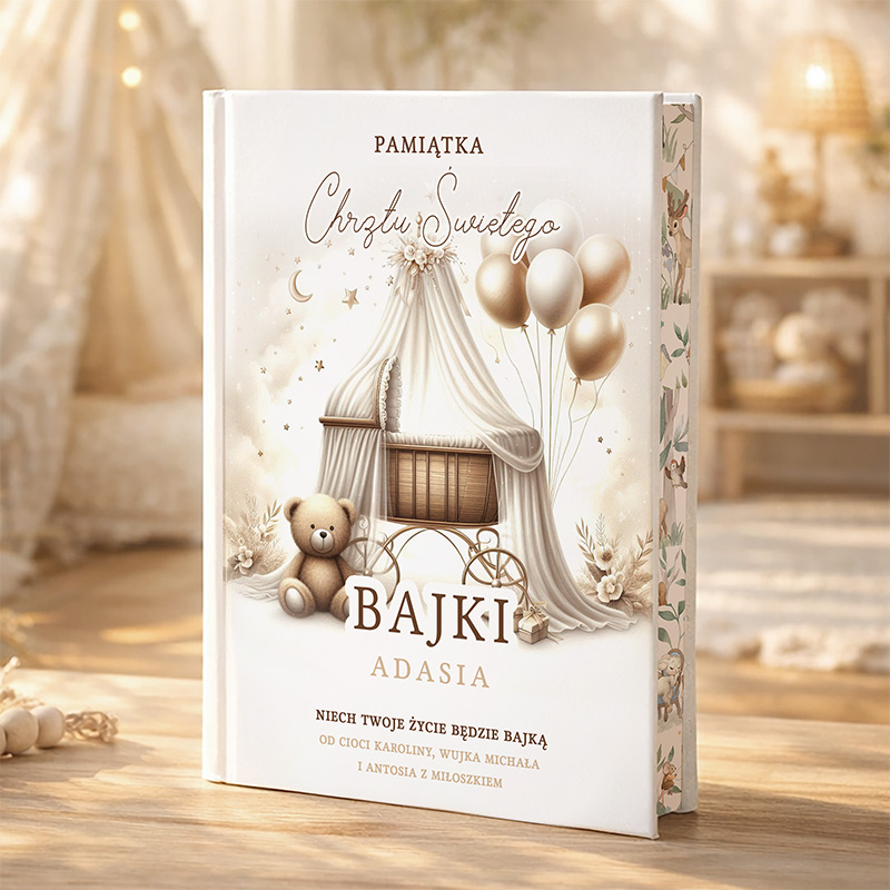 Dzięki swojemu estetycznemu wykonaniu i eleganckiemu stylowi, nasza pamiątka Chrztu Świętego w stylu BOHO pasuje do każdego dziecięcego pokoju, dodając mu niepowtarzalnego uroku. Wszystko to sprawia, że jest ona idealnym prezentem na chrzciny, ale także na inne okazje, takie jak urodziny czy Dzień Dziecka. Podaruj swojemu dziecku coś więcej niż tylko książkę – podaruj mu mądre i edukacyjne bajki, które pozostaną w jego sercu na zawsze.