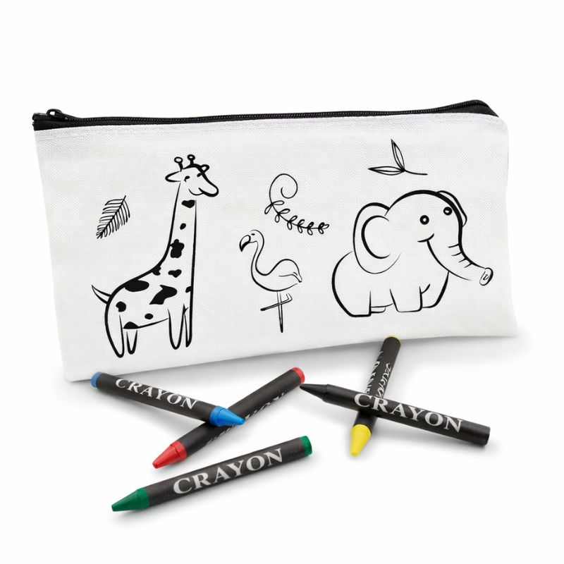 Piórnik posiada jasną powierzchnię z czarno-białymi ilustracjami zwierzątek: żyrafy, flaminga czy słonia, które zachęcają do kolorowania. Dzięki temu dziecko może rozwijać swoje zdolności manualne i kreatywność podczas zabawy. W zestawie znajdują się kolorowe kredki. Piórnik posiada wygodny zamek błyskawiczny, dlatego świetnie sprawdza się do przechowywania przyborów szkolnych, takich jak kredki, długopisy czy flamastry. Co więcej, jego kompaktowy rozmiar sprawia, że bez problemu mieści się w plecaku, dlatego dziecko może zabrać go do szkoły, przedszkola lub na wyjazd.