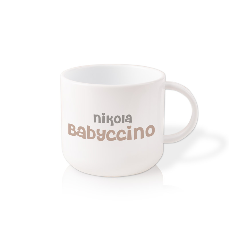 Kubek został wykonany z trwałego tworzywa, dzięki czemu jest odporny na upadki i idealny dla najmłodszych. Personalizacja imieniem oraz napis „babyccino” nadają mu wyjątkowego, dziecięcego charakteru i sprawiają, że dziecko chętniej po niego sięga. Prosta forma i wygodny uchwyt zapewniają komfort użytkowania każdego dnia.