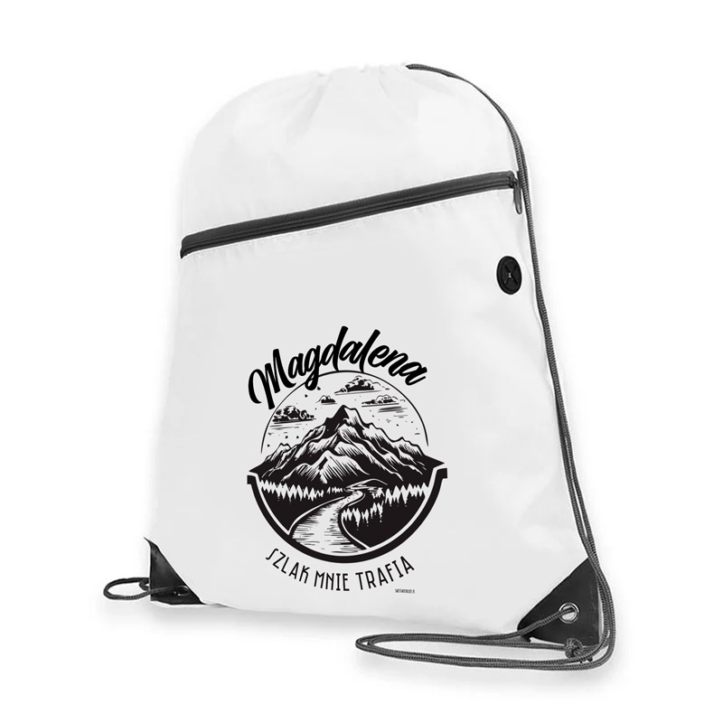 Worko-plecak z napisem „Szlak mnie trafia” to wygodny i stylowy dodatek dla miłośników górskich przygód. Na froncie znajduje się wyrazista grafika z górskim krajobrazem oraz możliwość personalizacji imieniem. Worek posiada solidne sznurki pełniące funkcję szelek, które umożliwiają wygodne noszenie na plecach. Dodatkowym atutem jest zapinana kieszeń na zamek, w której można bezpiecznie przechowywać telefon, dokumenty lub inne drobne przedmioty. Plecak został także wyposażony w specjalne wyjście na słuchawki, co pozwala komfortowo słuchać muzyki podczas spacerów, wycieczek czy podróży.