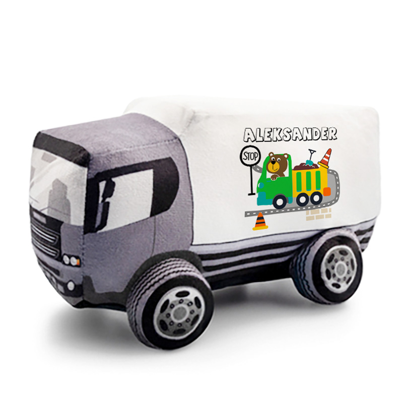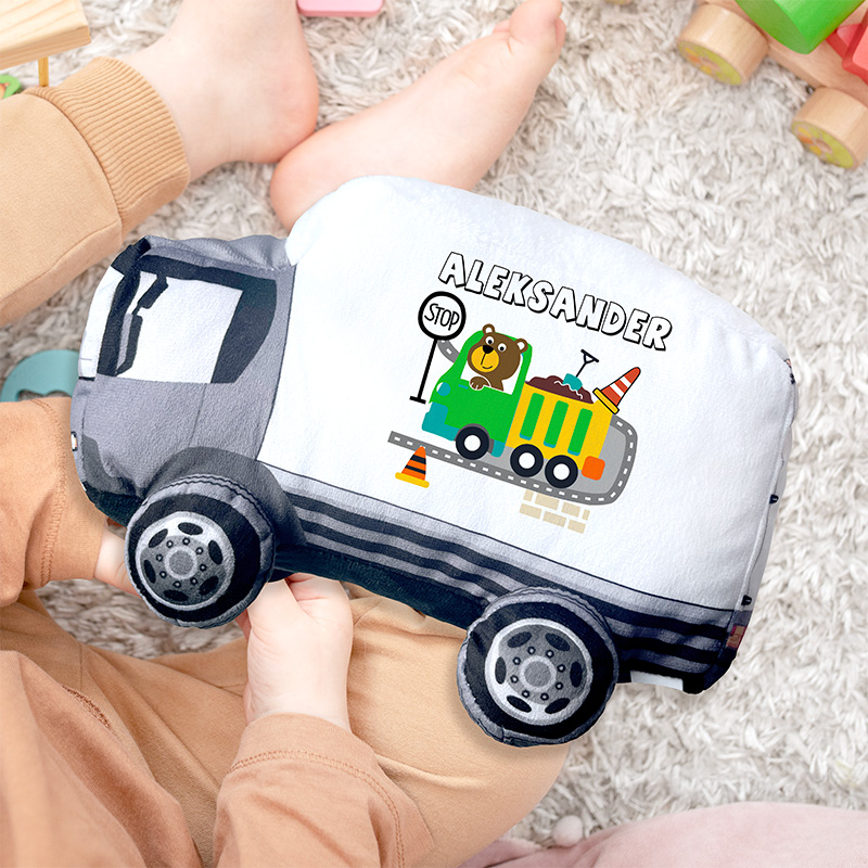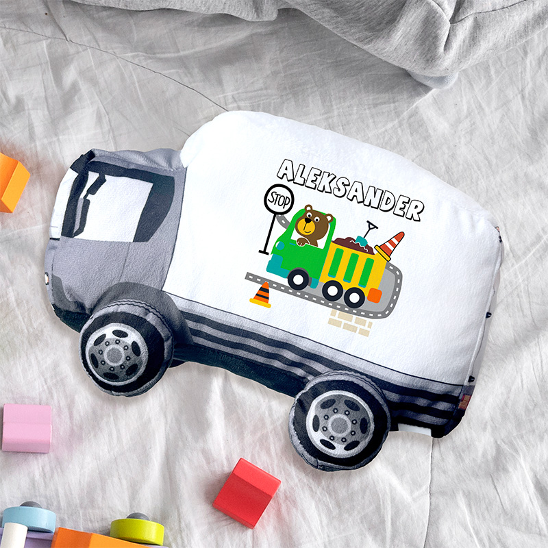 Poduszka ciężarówka z imieniem dziecka łączy w sobie funkcjonalność i atrakcyjny design. Jej forma przypominająca prawdziwy pojazd z pewnością przyciągnie uwagę najmłodszych, a kolorowy nadruk z misiem i elementami drogowymi rozweseli każdą aranżację pokoju. Imię nadrukowane na boku ciężarówki sprawia, że staje się ona wyjątkowa i dopasowana do małego właściciela. Poduszka świetnie nadaje się do codziennego użytku – można się nią bawić, przytulać lub wykorzystać jako ozdobę łóżka. Dzięki ciekawemu kształtowi rozwija dziecięcą wyobraźnię i dodaje wnętrzu przytulności. To praktyczny gadżet, który łączy zabawę z dekoracją.